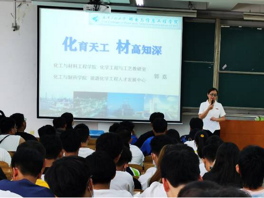 此外,化工与材料工程学院特邀博士生导师、楚天学者、武汉工程大学郭嘉教授作客我院邮电大讲堂,为新生开展“化育天工 材高知深”主题讲座。学院副院长欧阳琼主持,化工与材料工程学院全体新生和教师积极参加,并热情学习。
