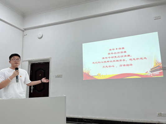 院学生会朱鹏成、国旗班汤颖、经济与管理学院刘稳、马克思主义学院严烁就活动主题分别作了《做一名“清廉'才俊》、《不忘初心 牢记使命 青年话“清廉”》、《当好青年干部 做好时代新人》、《清正廉洁树新风 求真务实伴成长》主题演讲。