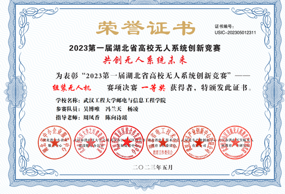 学院领导高度重视,组织骨干教师成立竞赛小组,主动与相关高校、企业交流,深入学习无人机相关技术,赛前对学生做了充足的培训,通过校内赛选拔,组织学生参加了湖北省无人系统创新竞赛三个赛道的竞赛,共计24组。经过激烈角逐,最终荣获省一等奖12项,省二等奖7项,省三等奖3项,优秀奖2项。