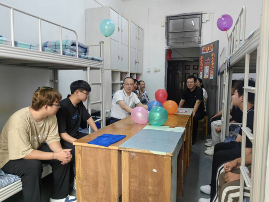 2023年9月14日上午,学院副院长沈国红在院长助理、招生与就业工作部部长田文明,资产与后勤管理部部长卢勇,学生工作部副部长邓文娇及建筑工程学院领导班子的陪同下,深入建筑工程学院新生宿舍。 沈国红与学生们亲切交流,了解学生基本情况和诉求,并提出三点希望:一是要坚定理想信念,志存高远;二是要努力学习专业知识,掌握学习方法,增长才干,厚积薄发,为今后发展打下坚实基础;三是要加强体育锻炼,增强身体素质,发展爱好,养成良好的习惯,以强健的体魄和顽强的毅力为社会主义建设添砖加瓦。