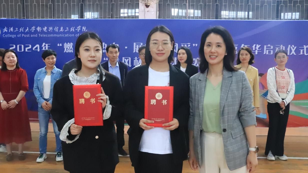 院长助理、党委组织部部长文婷为辅导员许慧钰、李诗哲颁发大学生艺术团指导老师聘书。