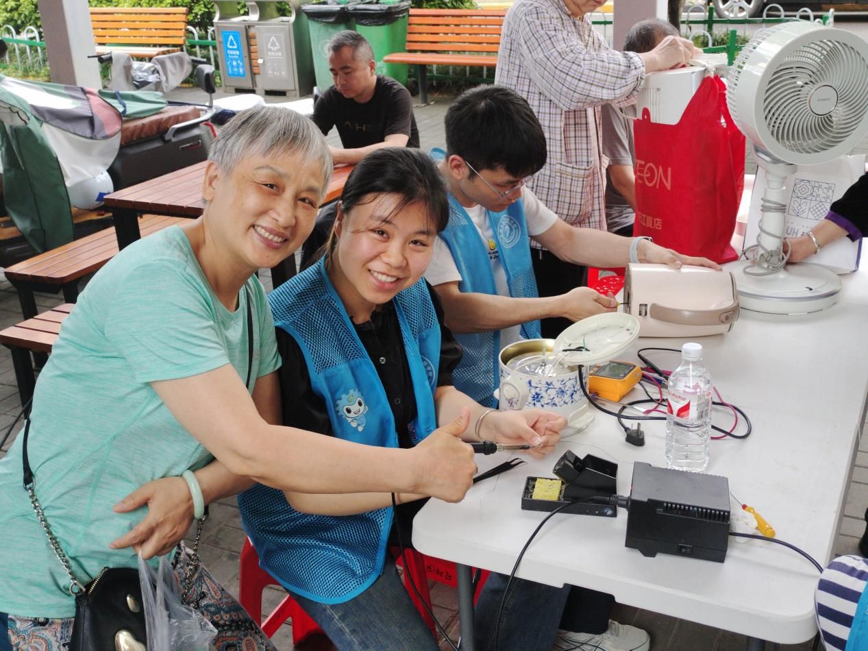 签约仪式结束后,机械与电气工程学院“梦之队”志愿者们在现场组织开展了小家电维修活动。他们分工明确,充分发挥专业优势,仔细检查并询问家电损坏情况,认真维修每一件电器,为居民解决电器故障。一个个电水壶、电饭煲、电风扇等小家电在志愿者的手中修好,现场居民纷纷竖起了大拇指。同时,志愿者们还为居民讲解了家电安全注意事项和维修常识,让居民掌握家电维修的基本方法。