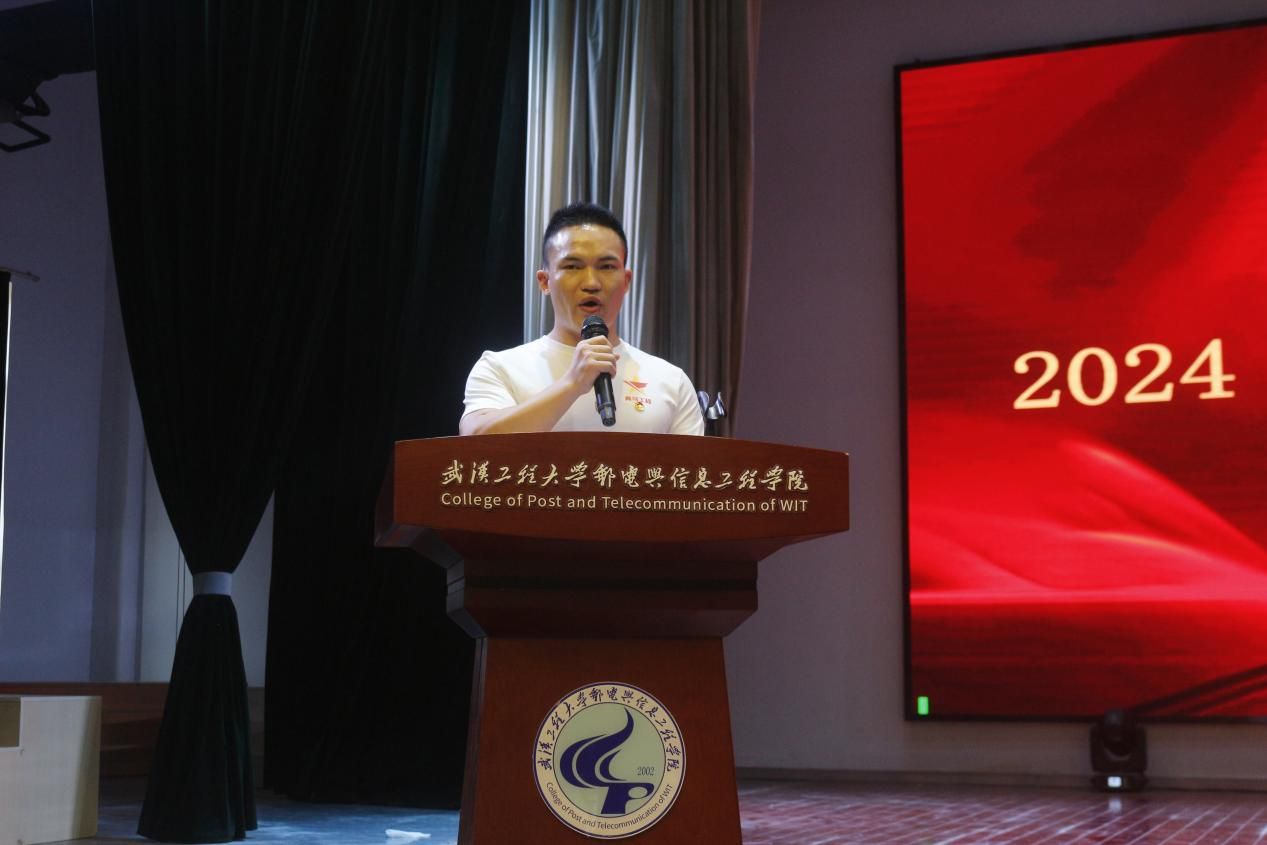 2023年“青马班”优秀学员代表朱鹏成同学发言,他分享了所学所获,号召2024年“青马班”全体学员坚守爱国初心,坚定理想信念;锤炼本领,勇于实践;增长才干,勇挑重担;发挥先锋作用,担当时代使命。