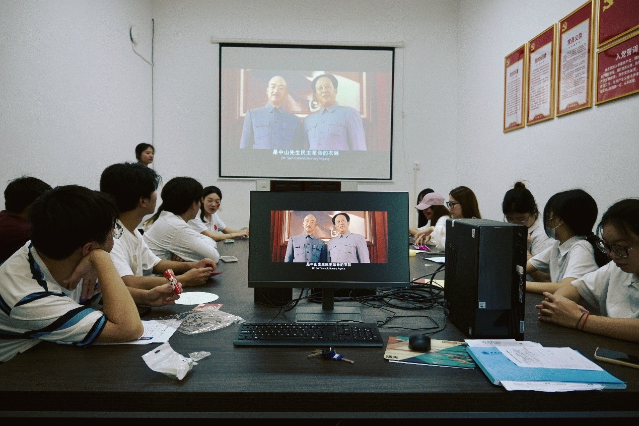师生党员共同观看红色题材影视作品《建国大业》,更加直观地感受到了那段峥嵘岁月,激发爱国热情。