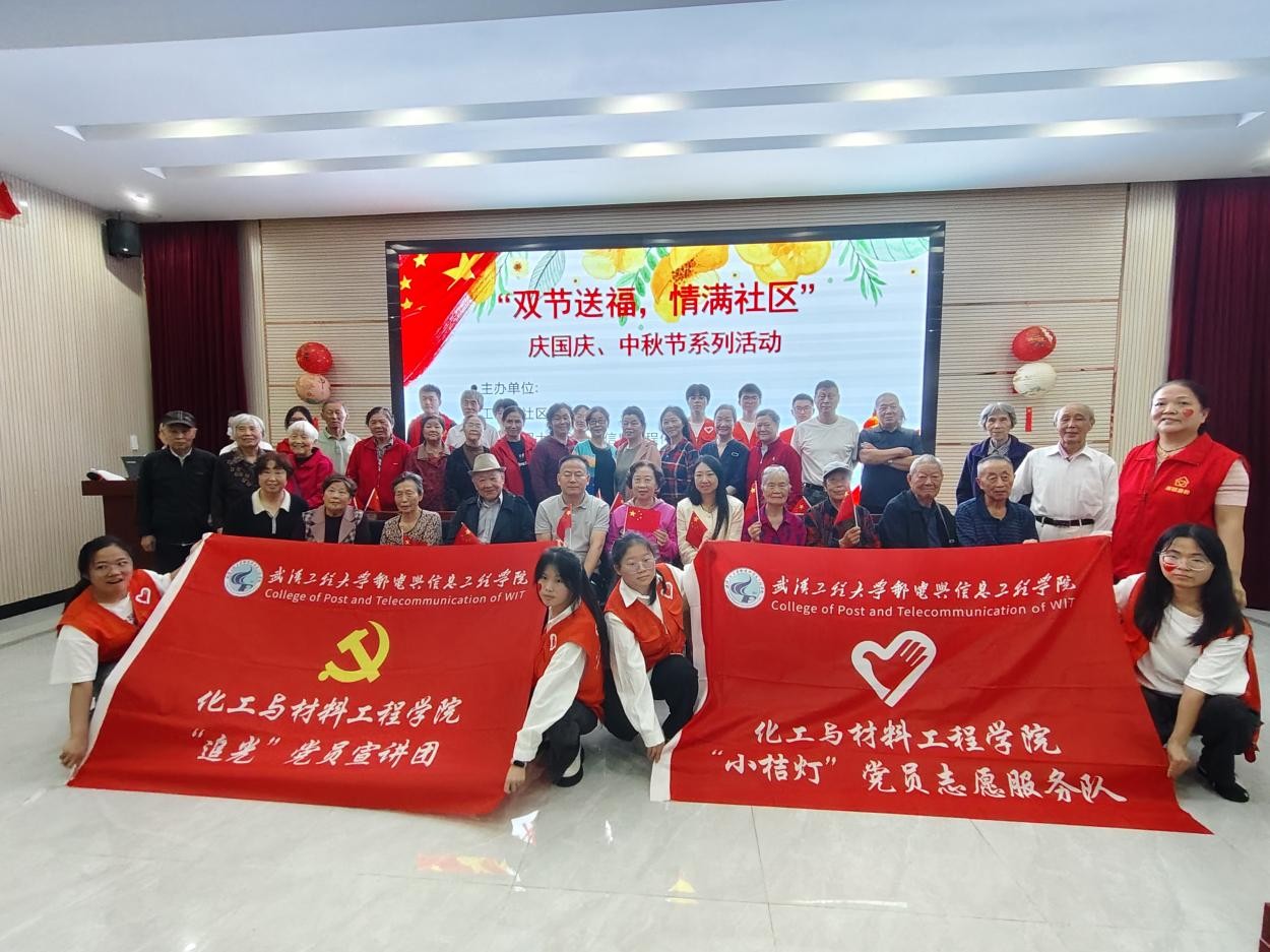 9月26日上午,武汉工程大社区居委会联合化工与材料工程学院共同举办“双节送福,情满社区”主题活动。活动在庄严温馨的氛围中拉开帷幕。武汉工程大社区书记王康、关媛,化工与材料工程学院党总支书记胡培参加,学生第五党支部书记徐玉梅带领学生党员、入党积极分子积极参与志愿服务。活动内容涵盖秋季养生讲座、文艺演出、猜灯谜、投壶游戏等环节,现场气氛热烈,老人们踊跃参与,笑声不断。特别设置的“送温暖”环节,志愿者们上门慰问困难居民,送去节日的问候与社区的关怀,展现了浓浓的邻里情谊。