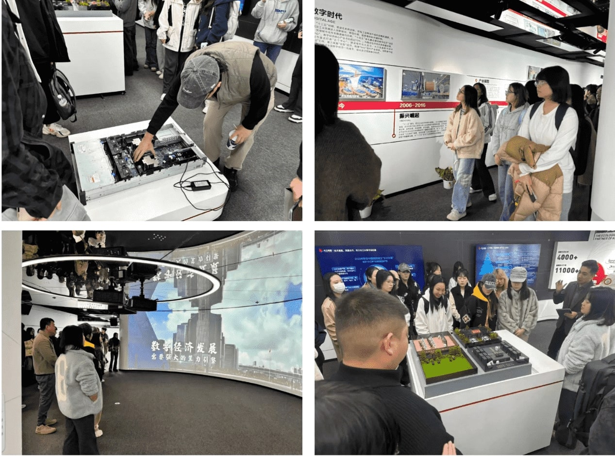 实践期间,各班学生小组带着对AI技术的探索热情,分批前往长江鲲鹏生态创新中心参观。在创新中心工作人员的专业讲解下,学生系统了解了长江鲲鹏生态的发展历程、核心技术优势及政务、金融、工业等领域的应用成果。通过先进硬件设备与创新解决方案的直观展示,学生对“AI与鲲鹏生态融合赋能产业升级”形成深刻认知。参观中,学生们围绕技术原理、应用难点等问题与工作人员深入交流,现场研讨氛围热烈,思维火花频现。
