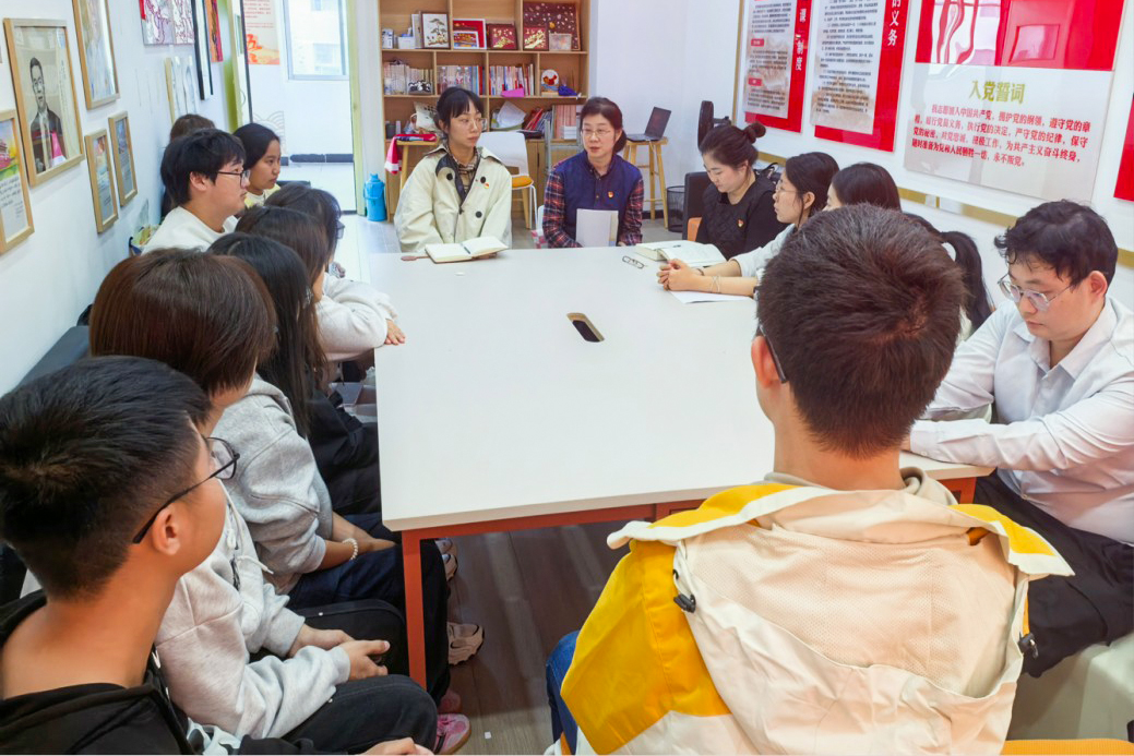 组织员张蕾、外语文法学院党总支副书记郭咪咪、第三党支部支部书记尹珊、党员代表及2025级学生代表。