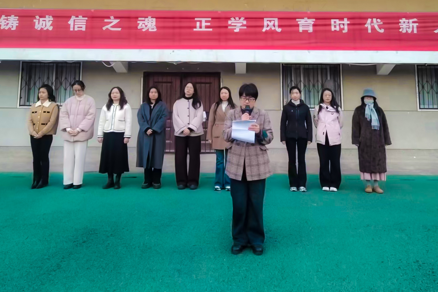 预备党员张彬同学领誓《诚信宣言》。他号召同学们以诚待人、以信立身,自觉规范言行,做守信有责的新时代大学生。