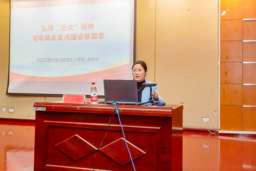 本次专题讲座特邀武汉工程大学马克思主义学院三级教授操菊华主讲。她以深厚的学术积淀和生动的理论阐释,系统梳理了“三大精神”纳入精神谱系的重要历程,深入解读了习近平总书记考察湖北重要讲话精神及省委书记王忠林关于弘扬“三大精神”的工作要求,强调“三大精神”作为党和国家的宝贵精神财富,是湖北加快建成中部地区崛起重要战略支点的强大精神引擎。