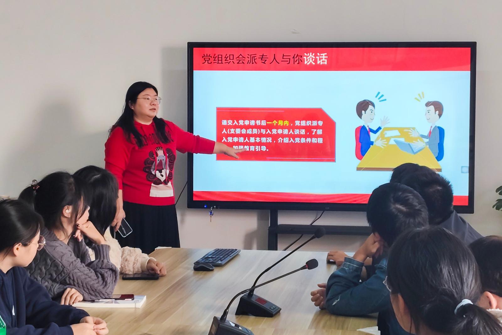 同日,第五党支部书记李媛媛围绕“如何撰写入党申请书”“党员权利与义务”展开微党课,详解入党条件、流程及“学习打基础、竞赛显实力、服务践初心”的成长路径。