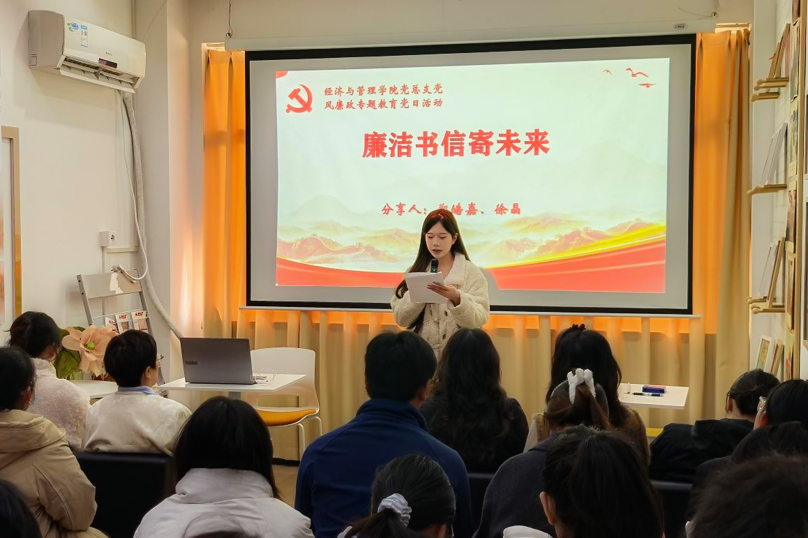 本次主题党日活动是经济与管理学院培育廉政文化品牌“青衿润廉”的生动实践。通过“党课导学、理论研学、宣讲促学、影教警学、实践践学”五维模式,学院将党风廉政建设的要求转化为青年可感知、可参与、可践行的成长教育,实现了党性锤炼、纪律教育与廉洁文化建设的有机融合,有力强化了学生党员的纪律意识与规矩意识,为其未来人生征程注入了坚定的清廉底色。经济与管理学院党总支将持续加强党风廉政建设,推动廉洁文化建设走深走实,为学院高质量发展提供坚强的纪律保障。