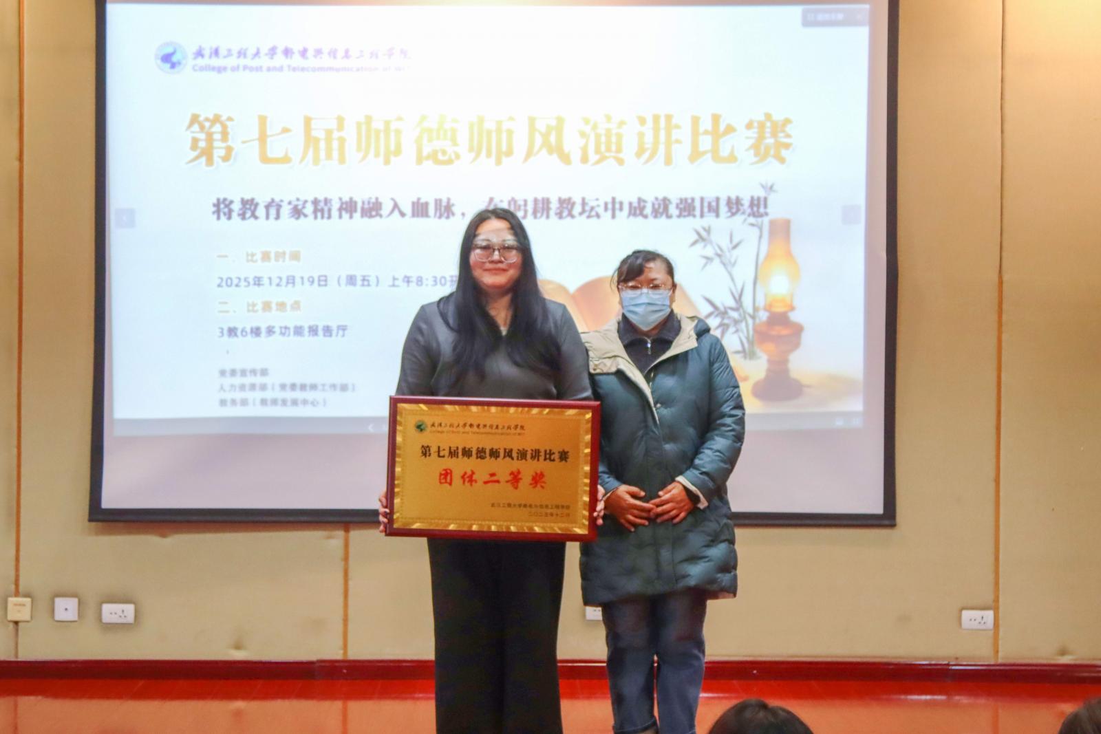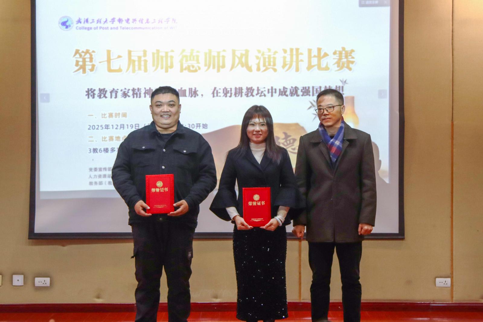 (通讯员 刘加贝 许诗谣 摄影 赵子龙)2025年12月19日上午,以“将教育家精神融入血脉,在躬耕教坛中成就强国梦想”为主题的学院第七届师德师风演讲比赛在三教六楼多功能报告厅圆满举行。全体院领导、相关职能部门负责人、各二级学院负责人、专职专任教师及学生代表出席本次活动。现场比赛环节由华雪老师和唐政康同学共同主持。
