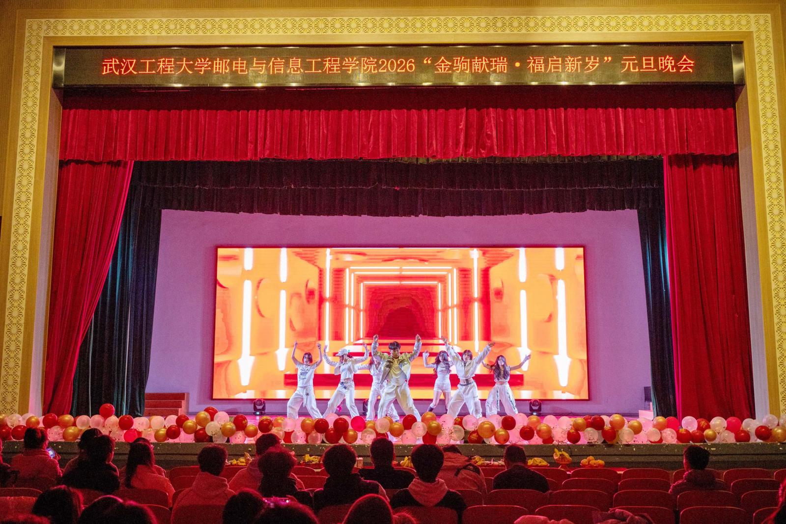 当晚19时,“金驹献瑞·福启新岁”2026年元旦晚会在学院大礼堂正式拉开帷幕,各二级学院及社团精心编排的合唱《阳光宅男》、街舞社舞蹈《We go up》、萨克斯演奏《起风了》、瑜音京剧社带来的折子戏《金山寺·水斗》、风华国乐社的乐器合奏《归期》等节目轮番上演,为现场师生带来一场视听盛宴。