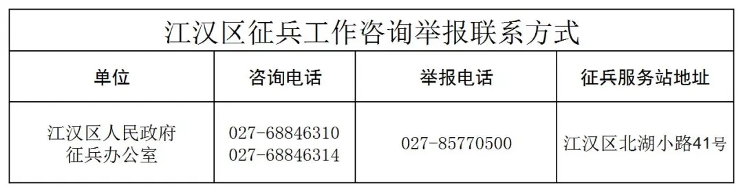 2026年武汉市江汉区廉洁征兵公告