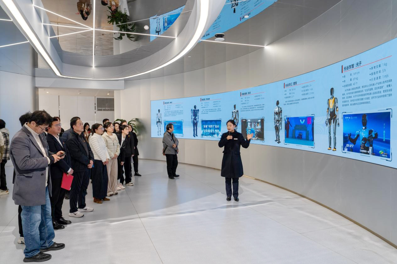 师生党员实地参观湖北人形机器人创新中心,在“三场一基地”近距离接触具身智能机器人灵巧的机械臂、精密的伺服关节与敏锐的感知系统。从“制造”到“智造”,一字之变、万象更新。师生党员在“看、听、讲、悟”中深刻体会到,智能制造不仅是技术迭代,更是发展逻辑的质变。大家纷纷表示,要把论文写在生产线上,把创新成果转化到车间里,以“时时放心不下”的责任感在科技前沿阵地发挥党员先锋模范作用。机械与电气工程学院会进一步加强校企双方在产教融合协同育人、实践教学基地建设等方面的深度合作,以党建引领为纽带,推动人才培养供给侧与产业需求侧紧密对接,共同探索“产学研用”一体化发展新路径,以高质量党建引领校企协同育人走深走实。