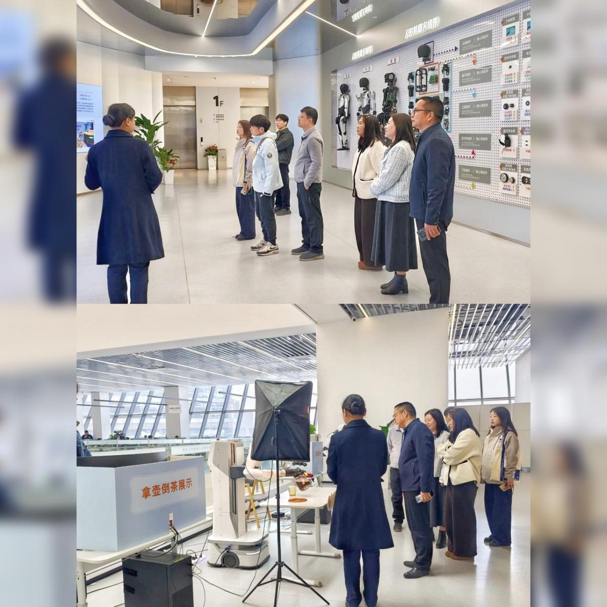 活动期间,计算机与信息工程学院(人工智能学院)一行在公司工作人员带领下,深入参观了湖北人形机器人创新中心,实地考察了机器人研发测试、动作训练及数据采集场地。通过工作人员对咖啡店、餐厅、工厂流水线等多场景数据采集工作的详细介绍,师生们切身感受到了机器人产业的蓬勃生机与广阔前景。