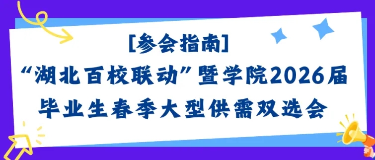 为深入贯彻党中央、国务院关于高校毕业生就业工作决策部署,积极配合省级高校毕业生供需见面活动工作安排,学校定于2026年3月25日(星期三)在武昌校区体育场举行“湖北百校联动”暨武汉工程大学邮电与信息工程学院2026届毕业生春季大型供需双选会,请各位毕业生做好充分的求职准备,积极参与本场校园招聘活动。