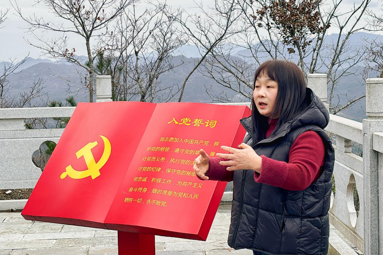 全体党员来到村内的红色遗址——娃娃寨,在苍松翠柏的见证下,面对鲜红党旗,由野花坪村党支部党委委员肖华同志领誓,重温入党誓词。铿锵誓言在山谷间久久回荡,是对初心的叩问,更是对使命的回应。随后,肖华同志就地讲授了一堂生动的微党课,她结合娃娃寨的革命历史,深情讲述先辈们的英勇事迹,号召大家在乡村振兴这个新的“战场”上,赓续红色血脉,勇挑时代重担,以实干实绩告慰历史、不负人民。