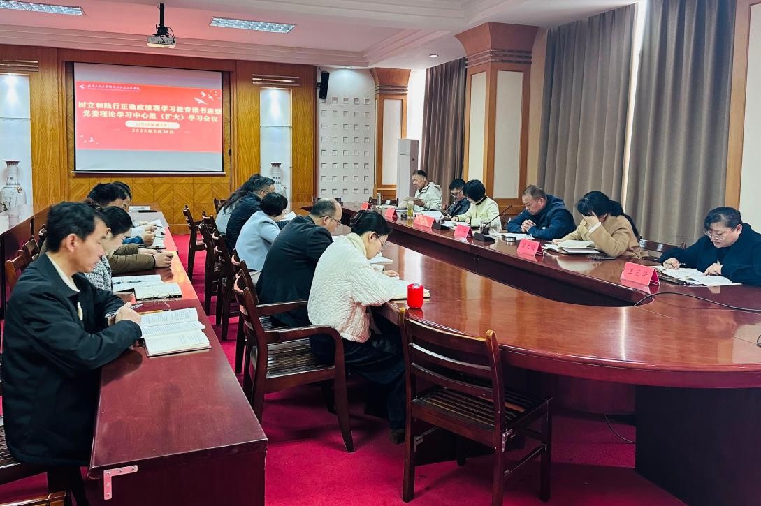 (通讯员 许诗谣)3月25日上午,学院在三教九楼会议室举行树立和践行正确政绩观学习教育读书班暨党委理论学习中心组(扩大)学习会议,集中学习《习近平关于树立和践行政绩观论述摘编》部分内容。党委书记李芳带头领学第一章并作主持讲话,院长冯兵领学第二章,党委副书记、副院长田艺领学第三章。学院领导班子参与学习,各党群部门负责人、机关机关党总支、二级学院(校区)党总支主要负责人列席会议。