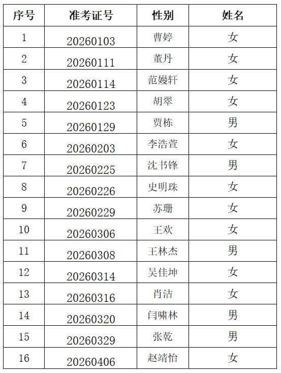 根据2026年辅导员招聘工作规定程序和笔试成绩,现将面试入围名单公布如下(按准考证号排序):