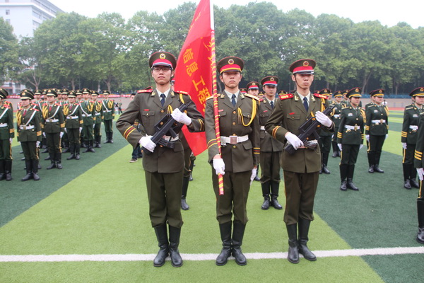 在比赛前夕,我院国旗班刚刚换上了新式军装,新军装带给了队员们极大的鼓舞。26日上午,由陈建章,刘冲,汪宣涛3名旗手领头,18名队员组成的仪仗方阵参加了比赛。队员们秉承着平时良好的训练作风,队列整齐,身姿挺拔,步伐整齐划一,淋漓尽现军人矫健风姿。经过主席台时,标准的敬礼动作以及响亮的口号振奋人心,尽显军人阳刚之气。如虹的气势博得了现场的热烈掌声,也得到了评委们的一致肯定,以92分的全场最高分,荣膺一等奖。