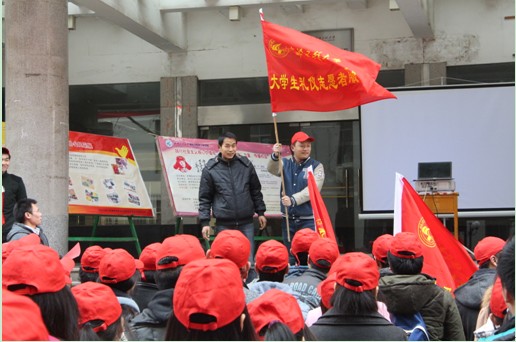院大学生志愿者协会指导老师李昂介绍了本次“学雷锋志愿服务月”的活动方案。本次活动的主题是“集聚校园‘微’力量,传播校园‘V’文化”,活动包括雷锋精神及志愿服务图片展、成立校园“V”分队、志愿服务进社区、文明校园创建等内容。院团委副书记文婷及各学部党总支副书记为“大学生爱心公益服务队”、“大学生文明校园创建服务队”、“大学生社区工作服务队”、“大学生礼仪志愿者服务队”、“大学生消防志愿者服务队”等五支志愿者服务队授旗。院大学生志愿者协会会长王振代表同学发出倡议,号召全院学生将雷锋精神贯穿于学习和工作生活中,永做雷锋精神的继承者和发扬者。
