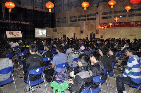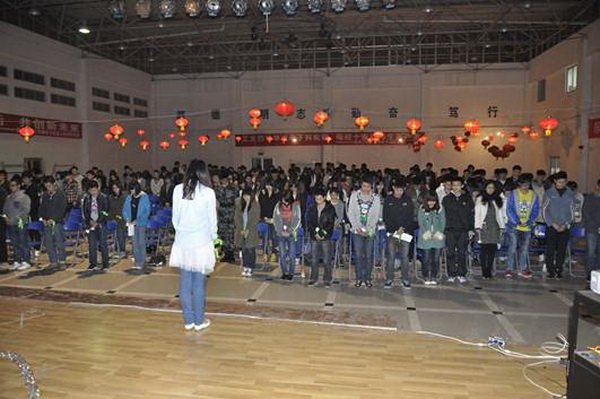 我院学子也心系灾区情系同胞。4月22日晚七点,我院大学生志愿者协会在大学生活动中心举办了为雅安祈福的爱心活动,同学们纷纷参与,志愿者们为每一位进场的同学系上一条象征爱与希望的绿丝带。
