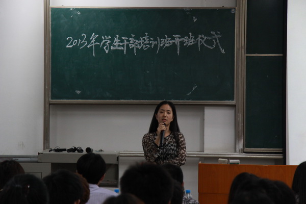 4月17日晚,我院2013年学生干部培训班开班仪式在3501教室顺利举行,院团委副书记文婷,学生工作处副处长李霞,机电学部副主任聂海滨,各学部团总支书记、院团委相关老师、各级学生组织负责人等参加了开班仪式。武汉工程大学团委副书记张永红受邀为培训班学员作首场专题讲座。