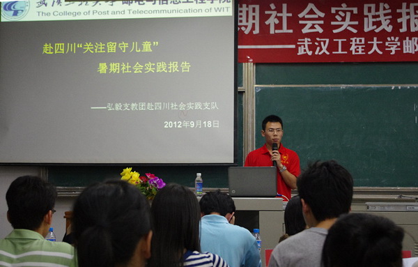 9月24日,我院在三教3303教室举行2012年大学生暑期社会实践答辩会,学院党委副书记陈俊,团委副书记文婷出席答辩会,思想政治理论课部第一教研室主任王炼钢、化工与材料学部副主任蒋国华、机电学部副主任聂海滨及各学部辅导员担任评委。