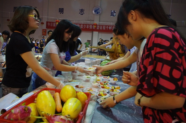 在台上文艺节目精彩上演的同时,台下的水果派对也如火如荼进行,大量自助水果、几百个品种的小吃,让大家在欣赏节目的同时也享受着美食,现场气氛温馨而热烈。此次晚会的创新创意吸引了众多的参与者,得到了大家的一致好评。