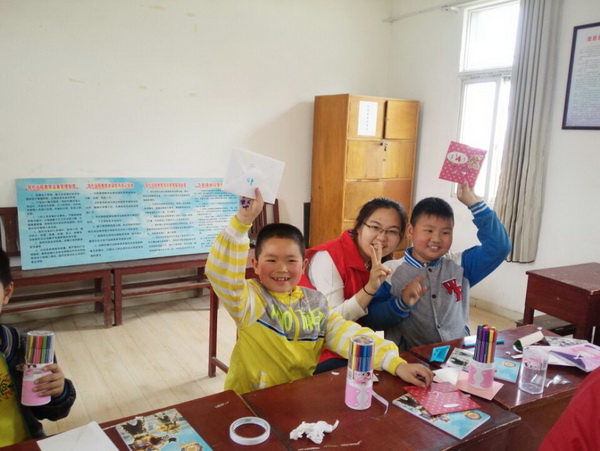 经济与管理学部志愿者们来到华容镇凉亭小学活动现场,向该小学捐赠了一批学习用品,此外,6名志愿者结对凉亭小学的16名留守儿童,并按照4月份“感恩母亲节”主题活动方案,开展感恩教育,指导他们手工制作“母亲节贺卡”,表达对母亲的思念与祝福。在手把手的实践教学中,志愿者们与留守学生分享了快乐,增进了友谊,为即将到来的母亲节准备一份特殊的礼物。