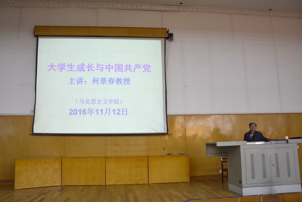 开班典礼后,马克思主义学院何景春老师以“大学生成长与中国共产党”为题,给第58期入党积极分子培训班全体学员做了第一场专题讲座,讲座案例详实,生动幽默,赢得了学员们的阵阵掌声。