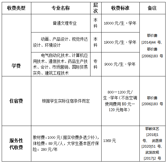 6.按国家有关规定,我院是按办学成本收费的普通高校,家庭经济困难学生向户籍所在县(区、市)的学生资助管理中心申请“生源地助学贷款”是缓解经济压力的最好途径,家庭经济困难学生应积极向当地有关部门咨询办理,具体要求见随寄的“高校本专科学生资助政策简介”。学院已开通生源地助学贷款咨询服务电话(027-87195156)。新生可凭本录取通知书购买来校火车票可以享受学生票价折扣。