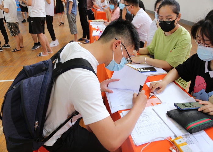 迎着朝阳,新生们陆续来到学院报到。学院相关工作人员、学生志愿者早已有序就位,欢迎他们的到来。在提交录取通知书和家庭联络表,核对录取信息,确定专业班级及寝室号,办理宿舍入住手续,领取宿舍钥匙、空调遥控器等物品并缴纳学费后,新生们开始了新的大学生活。