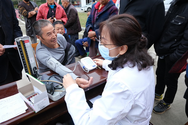 活动现场,前来求医问诊的村民络绎不绝。武汉工程大学校医院医生免费为他们进行血压、血糖、感冒、风湿、肠胃疾病的检查及防治,仔细地诊断病情,开出处方,并热心的为患者讲解相关的疾病预防知识。对能现场治疗的患者进行现场施治,对需要进行下一步检查的患者提出就医指导。