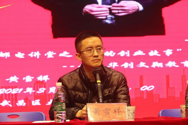 黄雪祥毕业于武汉工程大学,2014年开始创业,创业取得一定成就后,他一直致力于回馈母校和社会。2015-2019年间,为学校提供了200余个勤工助学岗位,并提供各类学生活动经费20余万元。他从三个方面分享了创业经验:一是成长。他抱着自强自立的心态进入了大学学习。第一笔收入是来自食堂服务员工作,不计得失,自立更生,是给同学们的第一份启示;二是机遇。机遇来自于平时的经验、实践、阅历,要善于抓住生活中的机遇,并且要在机遇来临之前,做好充分的准备;三是追求。作为一个创业者,做什么样的产品,做什么样的服务,获得什么样的口碑,密不可分。保证创业项目的品质,追求高口碑,是一个真正创业者的必经之路。他鼓励同学们一定完成规定学业,努力拿到奖学金,考取相应证书,确立自己的职业方向,尽量将学习与社会实践相结合。