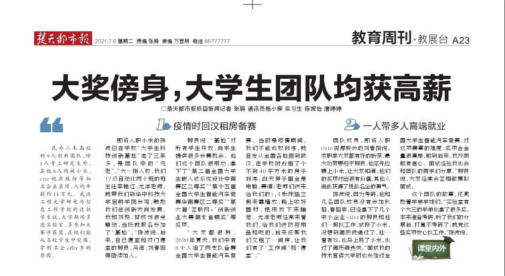 【楚天都市报】大奖傍身,大学生团队均获高薪